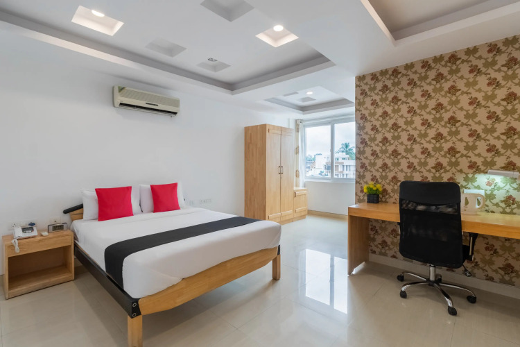 Отель Apollo 27 by OYO Rooms 3 звезды, адрес на карте Бангалор, 411 7th Cross Road 1st Stage Domlur Bengaluru, с описанием номеров и доступностью онлайн бронирования на площадке vashotel.ru , цены проживания и удобства.