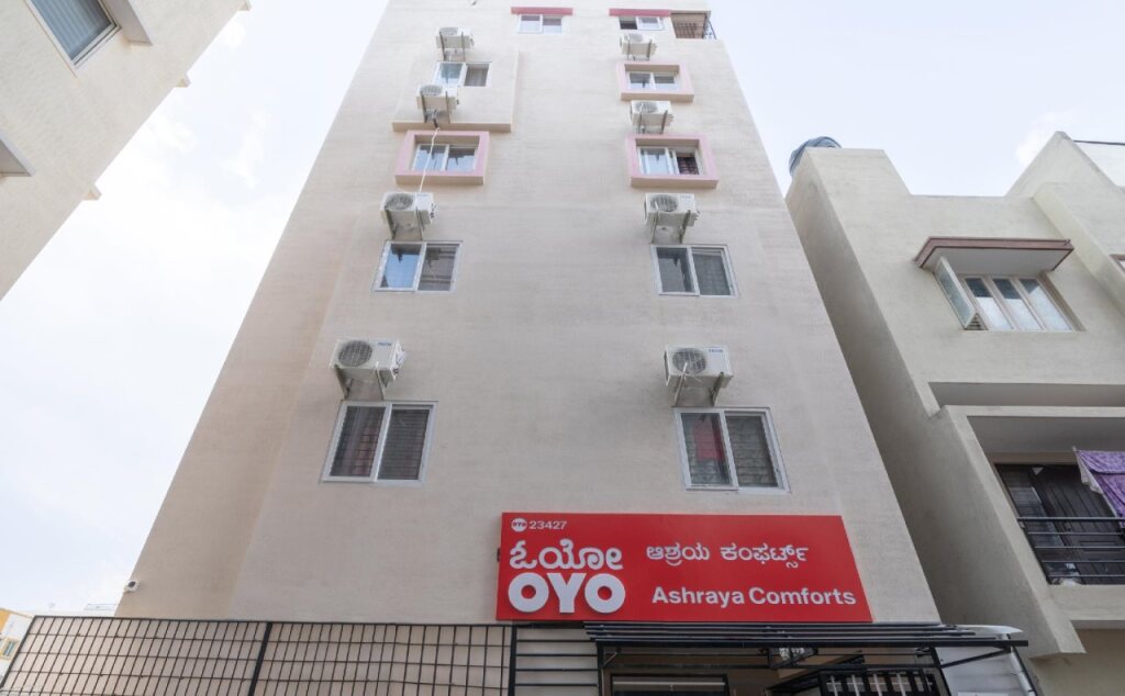 Отель Ashrey Comforts By OYO Rooms 3 звезды, адрес на карте Бангалор, 133 Manipal County Road, Balaji Layout, Singasandra, Electronic City, Bangalore 560068, с описанием номеров и доступностью онлайн бронирования на площадке vashotel.ru , цены проживания и удобства.