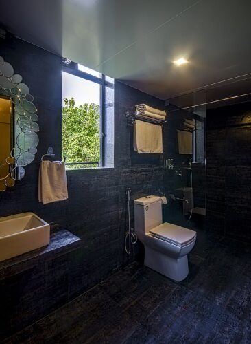 В номере вы найдёте душ и телевизор. Оснащение зависит от выбранной категории номера.