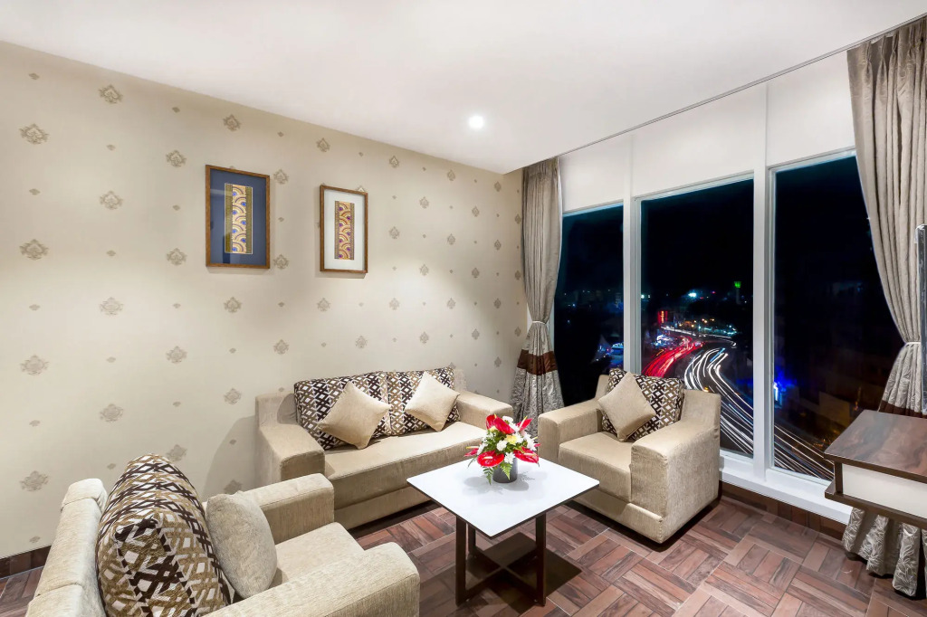 Предоставляется трансфер от и до аэропорта. Стоимость: 1,088.00 INR в обе стороны.
