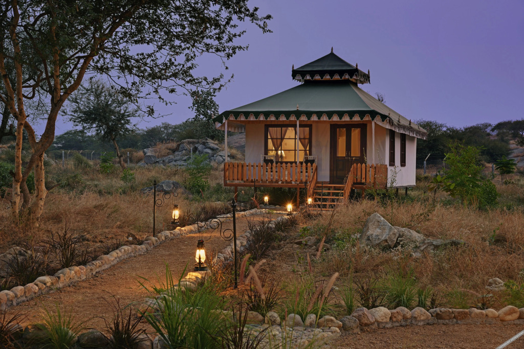 Отель Jawai Leopard Safari Lodge 3 звезды, адрес на карте Рамнагар, Village Dudhani - Moribera, с характеристиками номеров и правом онлайн бронирования на площадке vashotel.ru , стоимость проживания и удобства.
