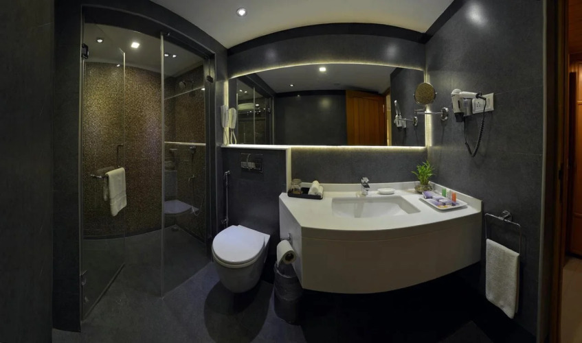 В номере вы найдёте душ, телевизор, мини-бар и халат. Оснащение зависит от выбранной категории номера.