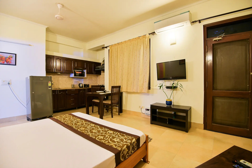 Отель Studio Service Apartment In Gurgaon by BedChambers, адрес на карте Гургаон, B-743, HUDA City Center, Sushant Lok Phase I, Sector 26A, Gurugram, Haryana 122001, с описанием номеров и возможностью онлайн бронирования на площадке vashotel.ru , цены проживания и удобства.