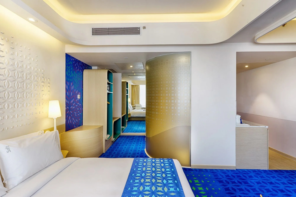 Номер уютно обставлен и оснащён необходимым, чтобы отдохнуть после долгого и насыщенного дня. Имеются будильник, душ, телевизор, мини-бар и тапочки. Оснащение зависит от выбранной категории номера.