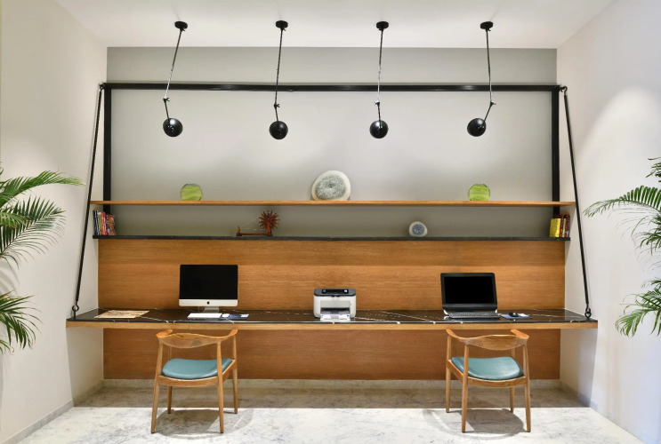 Можно организовать деловую встречу, переговоры и даже собеседование. Для этого предусмотрен конференц-зал. Для простоты передвижения возможна организация трансфера. Удобно для гостей с ограниченными возможностями: на верхние этажи гостей поднимает лифт. А ещё в распоряжении гостей прачечная, химчистка, гладильные услуги, пресса, прокат автомобилей, сейф и консьерж.
