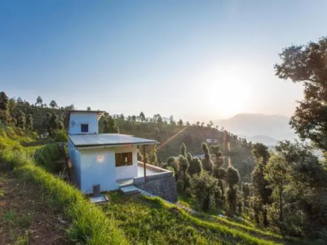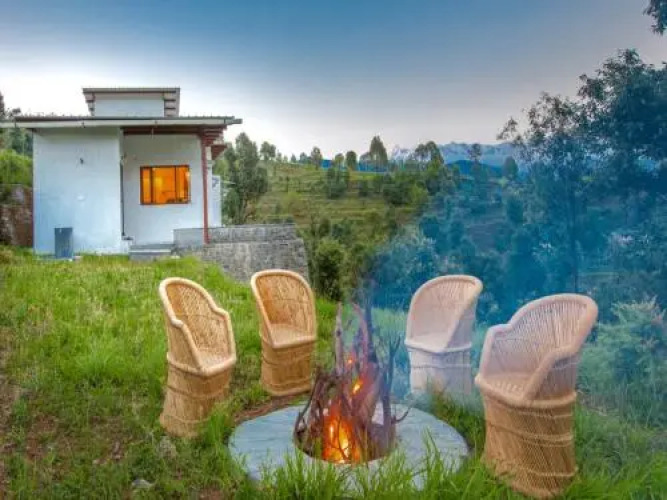 Отель SaffronStays Tridiva, адрес на карте Каусани, Near Gudam Estate, Tharali village, с описанием номеров и доступностью онлайн бронирования на сайте ВашОтель.RU , цены проживания и удобства.
