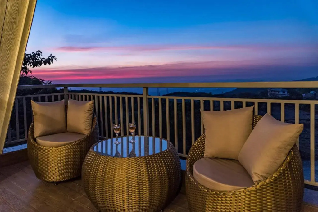 Отель SaffronStays Hillside Harriers - A Frame Chalets with bathtub for couples, адрес на карте Кхандала, Bhairav Estate, Complex of Falcon Hill, Aamby valley road, Atvan, с описанием номеров и возможностью онлайн бронирования на сайте vashotel.ru , стоимость проживания и удобства.