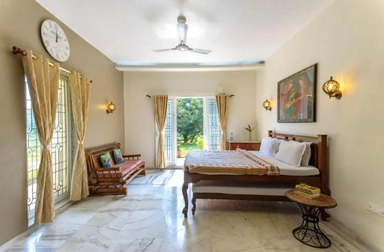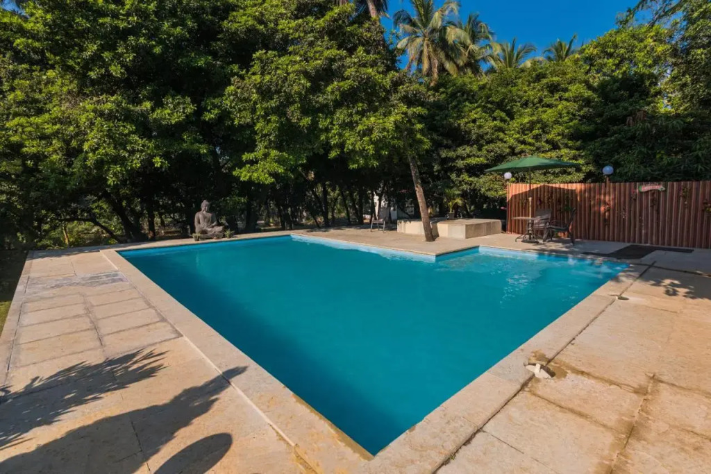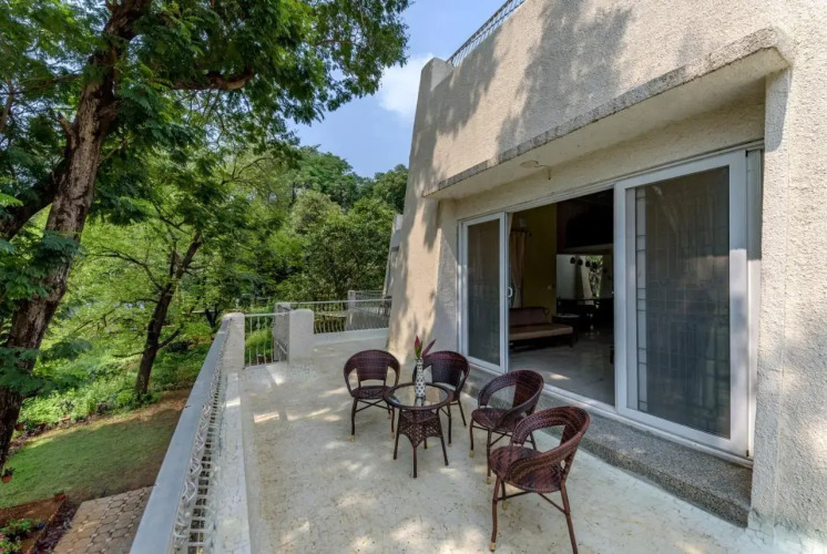 Отель SaffronStays Riverscape Villa, Karjat, адрес на карте Кхандала, Kamal Farms, 51/2A/18&19, c/o Bhadra Farms, Vanjarwadi, Karjat - Murbad Rd, Karjat, Maharashtra 410201, 410201 Chinchavli, India, с описанием номеров и правом онлайн бронирования на ресурсе vashotel.ru , стоимость проживания и удобства.