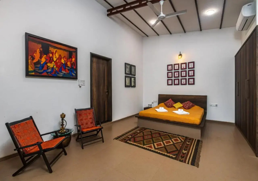 Отель Saffronstays Sanvina Farm, адрес на карте Кхандала, Near Dhamini Village, Sanvina Farm - 410201, с описанием номеров и доступностью онлайн бронирования на площадке ВашОтель.RU , стоимость проживания и удобства.