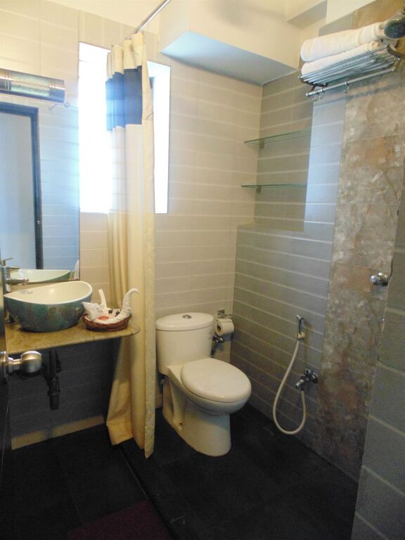 В номере вы найдёте душ, телевизор и тапочки. Оснащение зависит от выбранной категории номера.