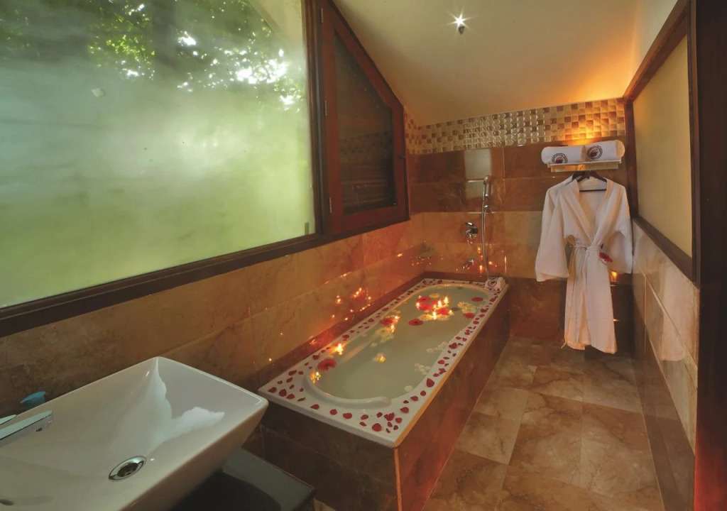 Среди услуг для красоты и здоровья — массажный кабинет, сауна, паровая баня и спа-центр. Любителям спорта подготовили фитнес-центр и настольный теннис. Скучно не будет, ведь в отеле к услугам отдыхающих караоке, библиотека, пинг-понг, площадка для пикника и площадка для барбекю. Здесь будем баловать себя водными процедурами: есть бассейн и открытый бассейн.