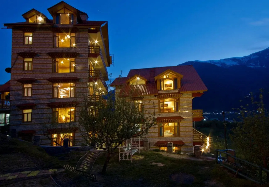 Бюджетный вариант для активного отдыха — отель «Foghills Cottages» находится в Манали. Этот отель располагается в 3 км от центра города.