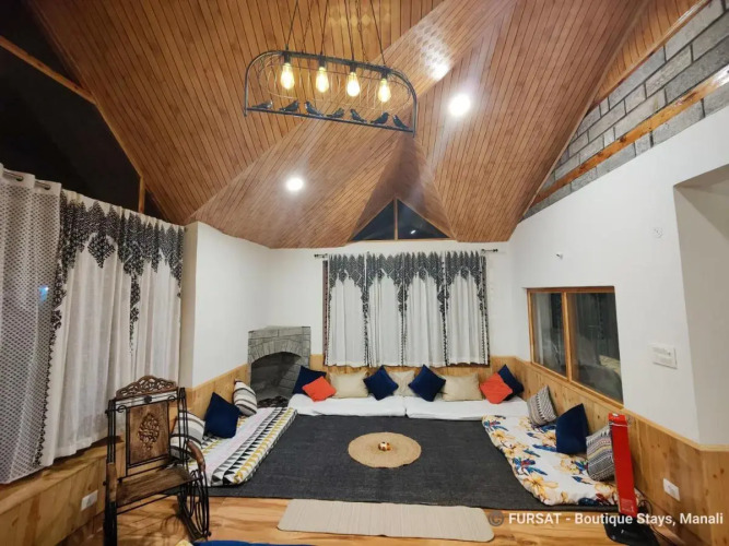 Отель Fursat Boutique Stay By Beyond Stay 3 звезды, адрес на карте Манали, Village Sarsai, Naggar-manali Highway P.o. Haripur, с характеристиками номеров и правом онлайн бронирования на ресурсе vashotel.ru , цены проживания и удобства.
