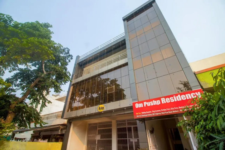Отель Itsy Hotels Om Pushp Residency, адрес на карте Матхура, A-5, CHANDRAPURI COLONY, NH-2 HIGHWAY, DHOLI PYAU ROAD, Mathura, 281006 Mathura, India, с описанием номеров и правом онлайн бронирования на сайте vashotel.ru , цены проживания и удобства.