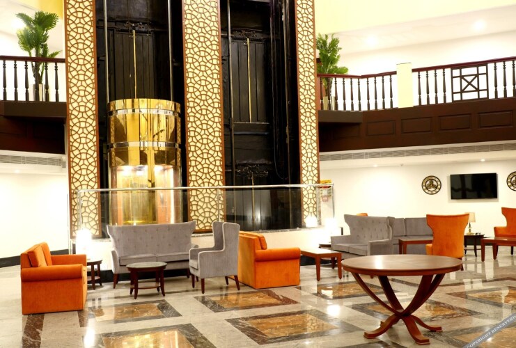 Удобно для гостей с ограниченными возможностями: на верхние этажи гостей поднимает лифт. А ещё в распоряжении гостей прачечная, химчистка, пресса, сейф и консьерж. Персонал отеля говорит на английском.