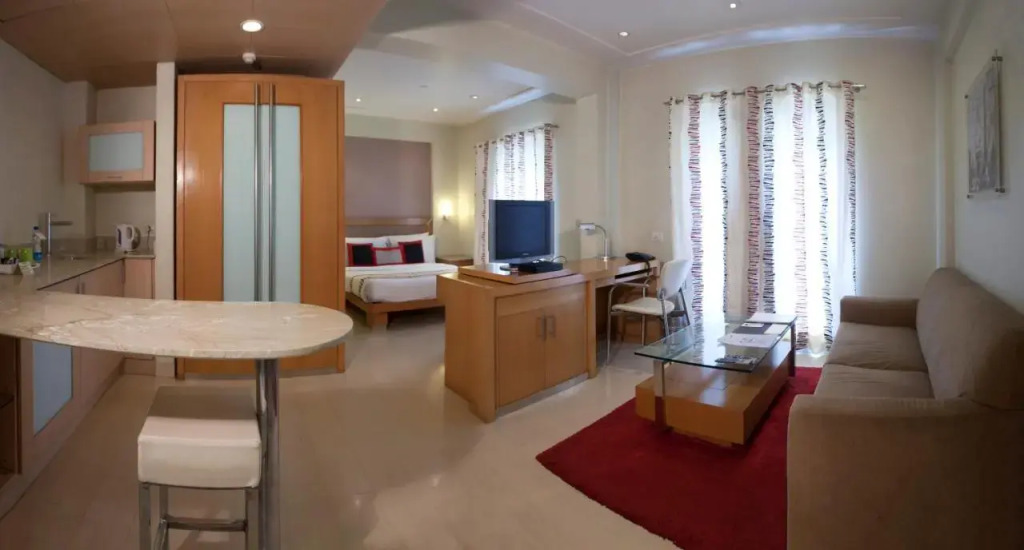 Отель Avalon Courtyard Residence Suites, адрес на карте Нью-Дели, MG Road, Near Sultanpur Metro Station, Sultanpur, с характеристиками номеров и возможностью онлайн бронирования на ресурсе vashotel.ru , стоимость проживания и удобства.