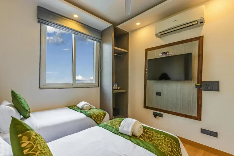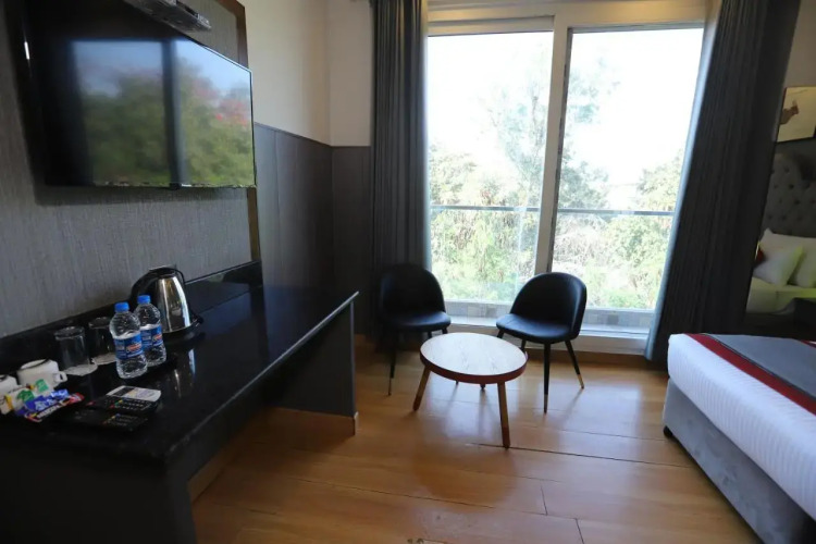 В номере вы найдёте телевизор. Оснащение зависит от выбранной категории номера.