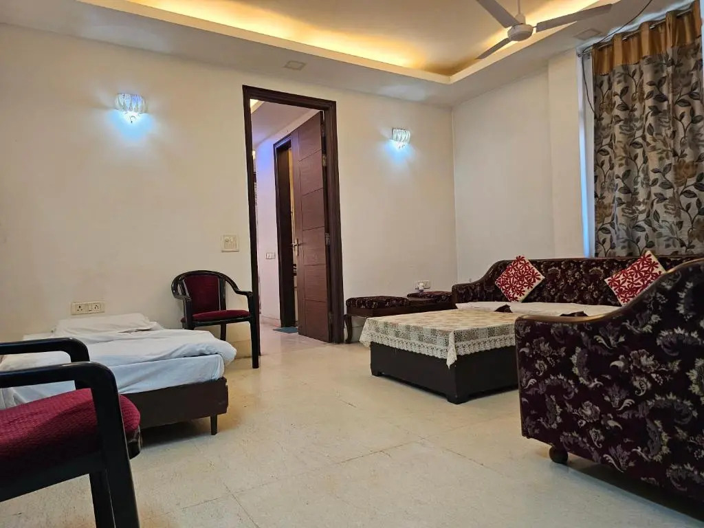 Подходящий вариант для большой компании: апартаменты «Spacious 2bhk apartment» находятся в Нью-Дели. Эти апартаменты располагаются в 5 км от центра города. Рядом с апартаментами — Мавзолей Низамуддина, Храм ISKCON Temple и Храм лотоса.