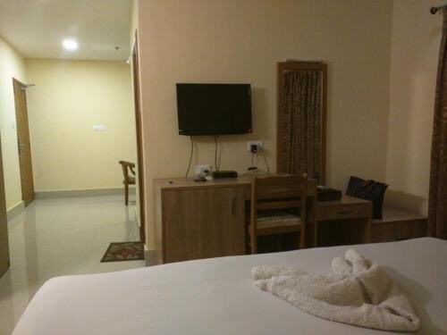 Номер уютно обставлен и оснащён необходимым, чтобы отдохнуть после долгого и насыщенного дня. Имеются душ и телевизор. Перечисленные услуги есть не во всех номерах.