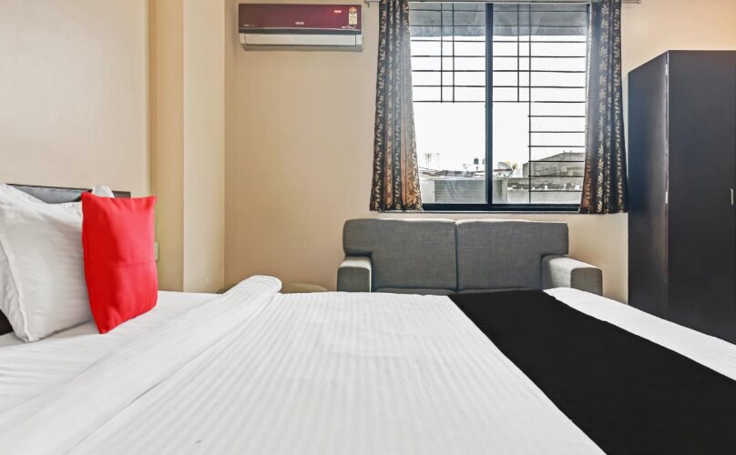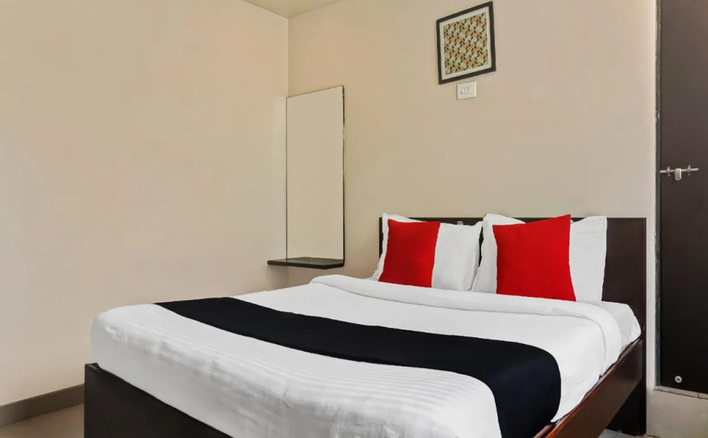 Отель Log Inn Plaza By OYO Rooms 3 звезды, адрес на карте Пуна, Survey 2340 Nagar Road Sai Satyam Park line 3 Opposite Ubale Nagar Bus Stand Wagholi Pune, с описанием номеров и доступностью онлайн бронирования на площадке vashotel.ru , стоимость проживания и удобства.