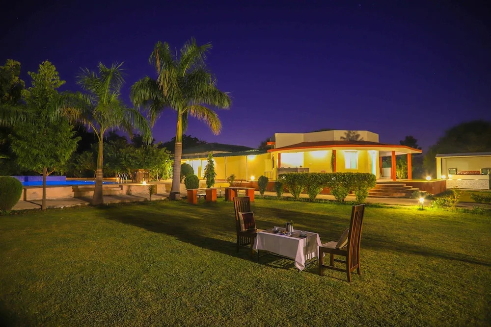 Отель V Resorts Tiger Inn Comfort Ranthambore 3 звезды, адрес на карте Савай Мадхопур, Village Khilchipur, Ranthambhore Road, с описанием номеров и доступностью онлайн бронирования на ресурсе vashotel.ru , стоимость проживания и удобства.