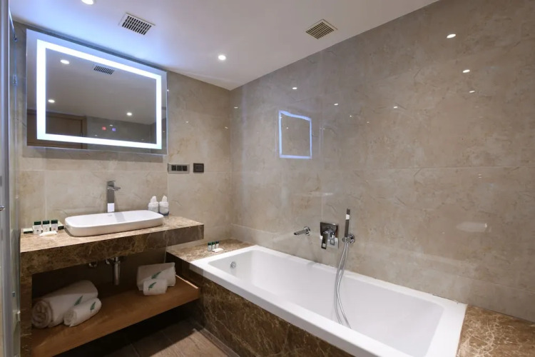 Также для гостей в отеле: массажный кабинет и врач. Спортивные гости оценят фитнес-центр. Здесь будем баловать себя водными процедурами: есть крытый бассейн и открытый бассейн. Можно организовать деловую встречу, переговоры и даже собеседование. Для этого предусмотрен конференц-зал.