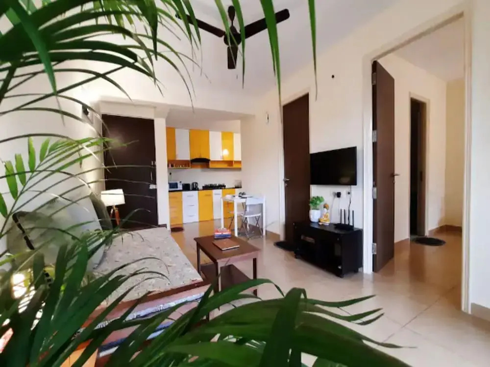 Отель Naavinya by Dancenter - 1bhk Apartment in Siolim, адрес на карте Сиолим, A-106, Sharayu Sunny Days, с описанием номеров и доступностью онлайн бронирования на площадке vashotel.ru , стоимость проживания и удобства.