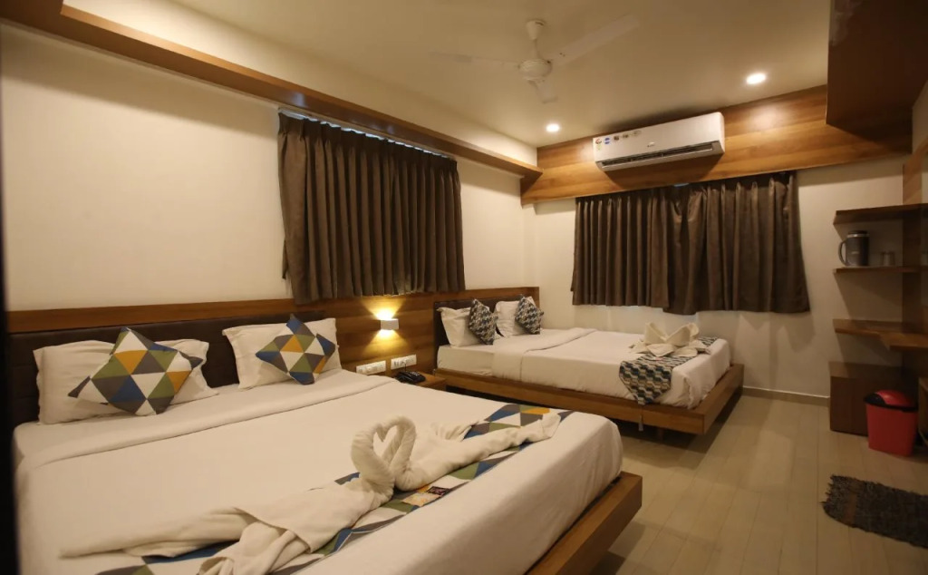 Подходящий вариант для бюджетного отдыха — отель «Hotel Swagat» находится в Сомнатхах. Этот отель расположен в центре города. Перед сном есть возможность прогуляться вдоль главных достопримечательностей.