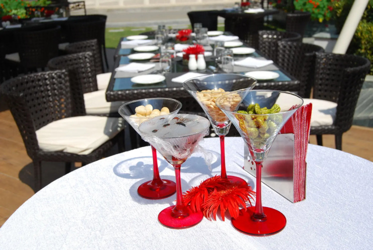 В ресторане отеля на завтрак, обед и ужин предлагаются разнообразные блюда национальной и европейской кухни. В зале для завтраков ежедневно сервируется бесплатный завтрак "шведский стол". Вы можете выпить чашечку кофе в кафе отеля. До позднего вечера и всю ночь напитки можно заказывать в баре отеля.