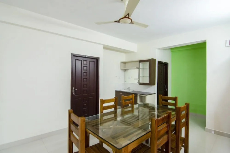 Отель OYO Home 27788 Elegant Stay Near International Airport, адрес на карте Тируванантапурам, Six Gems, TC 85/624, Opposite Artech Sreya, Kavaradi, Palkulangara, Petta -Kaithamukku Road, 695024, Trivandrum, INDIA, с характеристиками номеров и возможностью онлайн бронирования на ресурсе vashotel.ru , стоимость проживания и удобства.