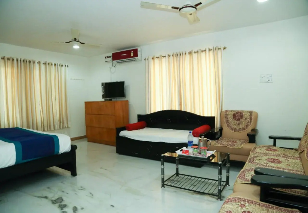 Отель OYO 8486 near Railway Station 3 звезды, адрес на карте Тирупати, Plot No. 14-S3-131, с описанием номеров и доступностью онлайн бронирования на сайте vashotel.ru , цены проживания и удобства.