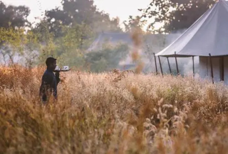 Guests will feel lavishly looked after here. When they return to their tent from an excursion, a welcome drink will be waiting for them. The library is a great chill-out spot with mid-century modern leather seating, lovingly battered luggage chests, and wildlife photographs, art and maps displayed. Guests can order s drink and head here to flip through books on local flora and fauna.