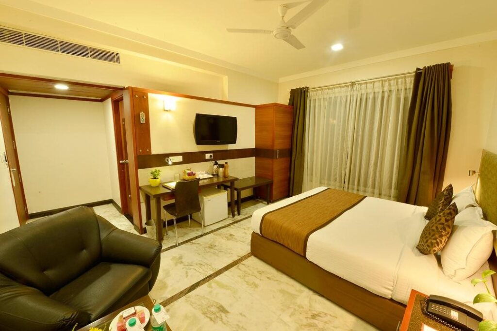 В кондиционируемых номерах отеля Amantra Comfort Hotel есть бесплатные туалетные принадлежности. В номерах есть проекционные ТВ-панели.