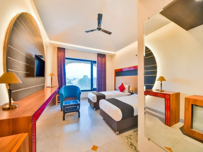 Отель Capital O 38052 Hotel Bhopal Palace 3 звезды, адрес на карте Удаипур, Balicha Bye Pass Hiran Magri Balicha, с описанием номеров и возможностью онлайн бронирования на площадке vashotel.ru , цены проживания и удобства.