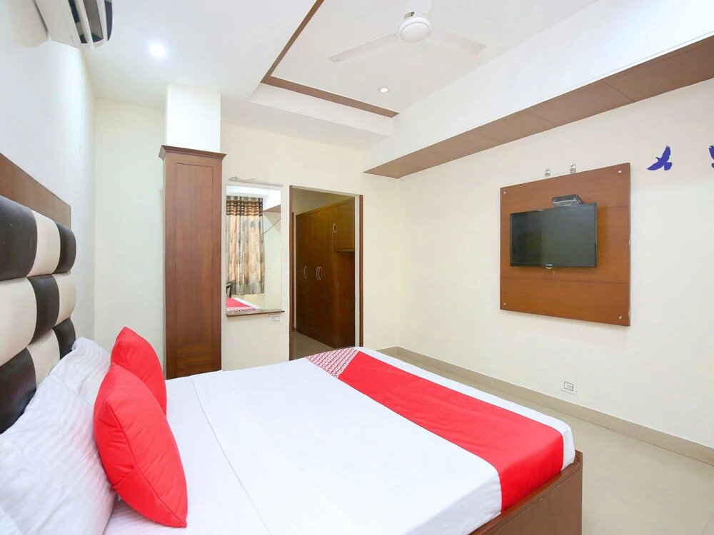 Отель OYO 14243 Hotel At inn 3 звезды, адрес на карте Зиракпур, 13 Patiala Road, Dashmesh Nagar, с описанием номеров и доступностью онлайн бронирования на сайте vashotel.ru , стоимость проживания и удобства.