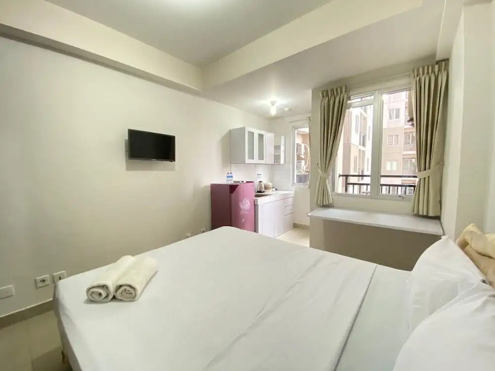 Отель Compact Studio Room Apartment at Sudirman Suites Bandung, адрес на карте Бандунг, Mahogany Lt 11No 10 Jl Jndral Sdirman, с описанием номеров и доступностью онлайн бронирования на ресурсе ВашОтель.RU , цены проживания и удобства.