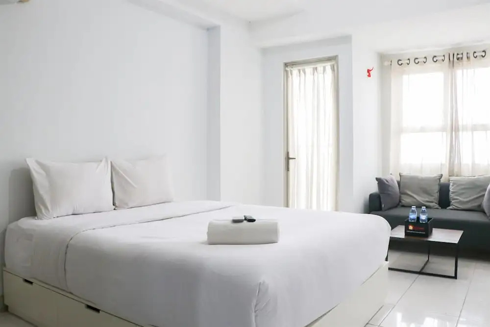 Отель Cozy And Nice Studio Apartment At Mekarwangi Square Cibaduyut, адрес на карте Бандунг, Tower A FL8 #17 Jl. Cibaduyut Raya No.14, с описанием номеров и возможностью онлайн бронирования на ресурсе ВашОтель.RU , цены проживания и удобства.