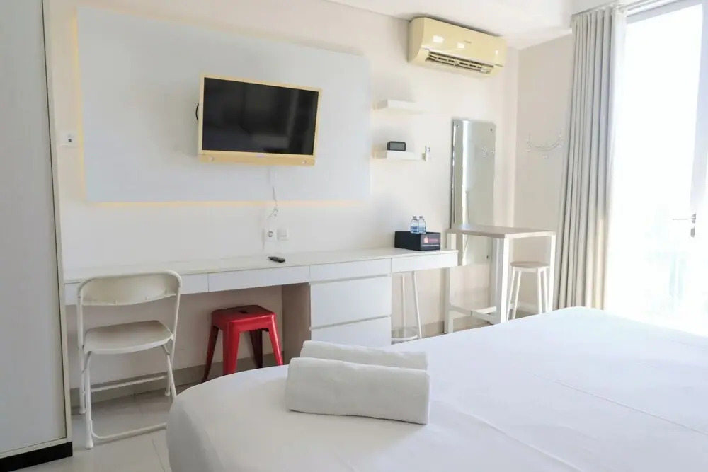 Отель Homey And Cozy Studio Apartment At Dago Suites, адрес на карте Бандунг, Tower A FL11 #46 Jl. Sangkuriang, с характеристиками номеров и возможностью онлайн бронирования на сайте vashotel.ru , стоимость проживания и удобства.