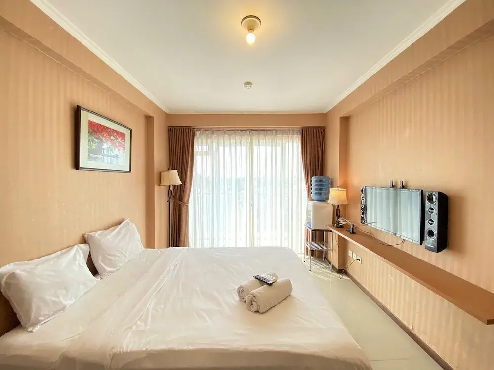 Отель Spacious Chic Studio Room Apartment At Gateway Pasteur, адрес на карте Бандунг, Jl. Gunung Batu, Ruby A 05FL #9A, с описанием номеров и возможностью онлайн бронирования на ресурсе vashotel.ru , стоимость проживания и удобства.