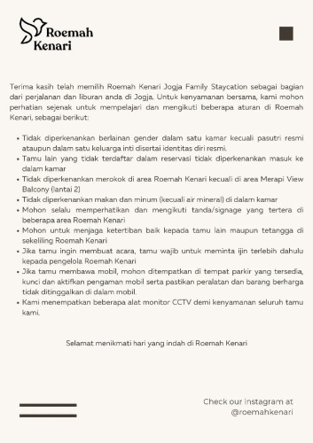 Отель Roemah Kenari 2 звезды, адрес на карте Батуретно, Jl. Poncowala No8,Kragilan, Kec. Mlati, с описанием номеров и возможностью онлайн бронирования на площадке vashotel.ru , цены проживания и удобства.