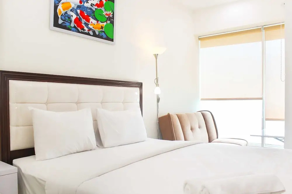 Отель Pleasurable Studio Grand Kamala Lagoon Apartment Near Mall, адрес на карте Бекаси, EMERALD NORTH 28FL #30 Jl. KH. Noer Ali, с описанием номеров и возможностью онлайн бронирования на сайте vashotel.ru , стоимость проживания и удобства.
