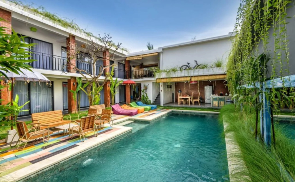 Отель Base Guesthouse and Hostel, адрес на карте Кангу, Jl Pantai Batu Bolong No. 29E, с характеристиками номеров и правом онлайн бронирования на ресурсе vashotel.ru , цены проживания и удобства.
