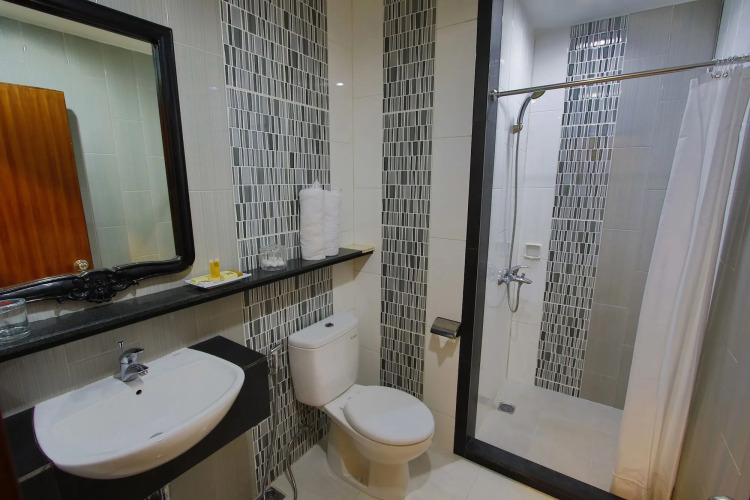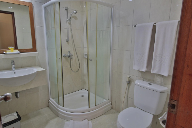В номере вас будут ждать душ, телевизор и тапочки. Оснащение зависит от выбранной категории номера.