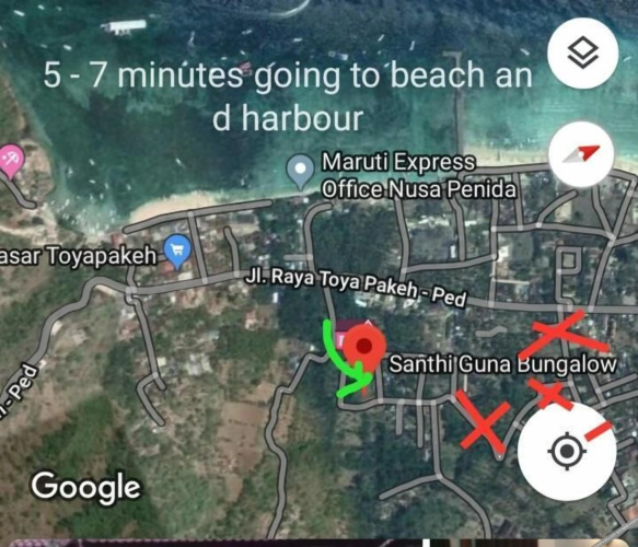 Отель Santhi Guna Bungalow 3 звезды, адрес на карте Пенида, Jln. Banjarnyuh Desa Ped. Kec, с описанием номеров и доступностью онлайн бронирования на ресурсе vashotel.ru , стоимость проживания и удобства.