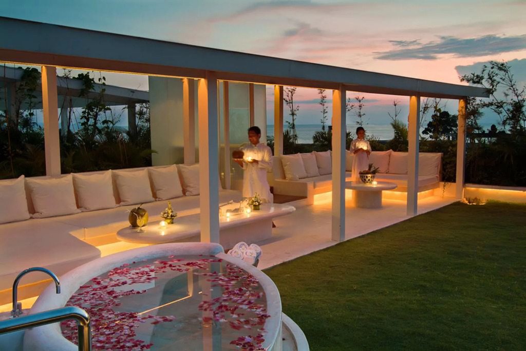 Поплавать и расслабиться в лучах тропического солнца можно в собственном открытом бассейне, который есть в каждой вилле. Также у вас есть возможность проводить время на песчаном пляже, наслаждаясь прохладным тропическим коктейлем. На крышах с озелененной террасой, откуда открывается вид на океан есть джакузи. У гостей также есть возможность заказать различные спа-процедруры по уходу за лицом и телом.