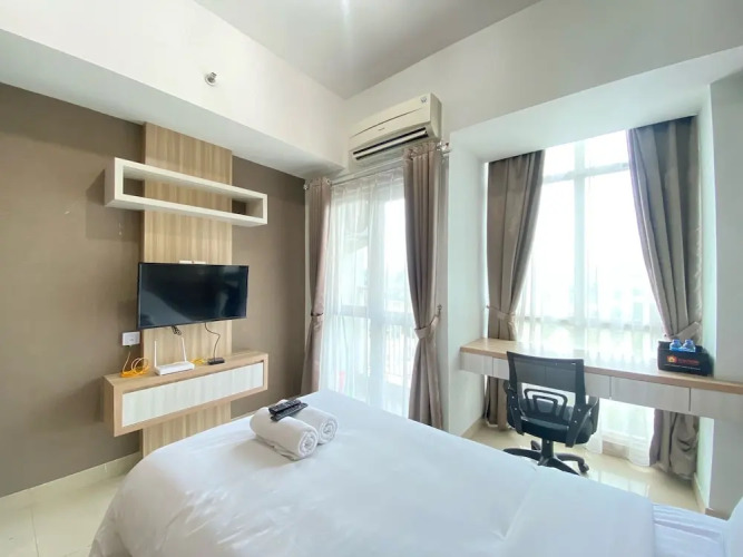 Отель Cozy Studio Room At Taman Melati Jatinangor Apartment, адрес на карте Сумеданг, Tower A Floor 14 Unit 05, Jl. Cikuda, с описанием номеров и доступностью онлайн бронирования на площадке vashotel.ru , стоимость проживания и удобства.