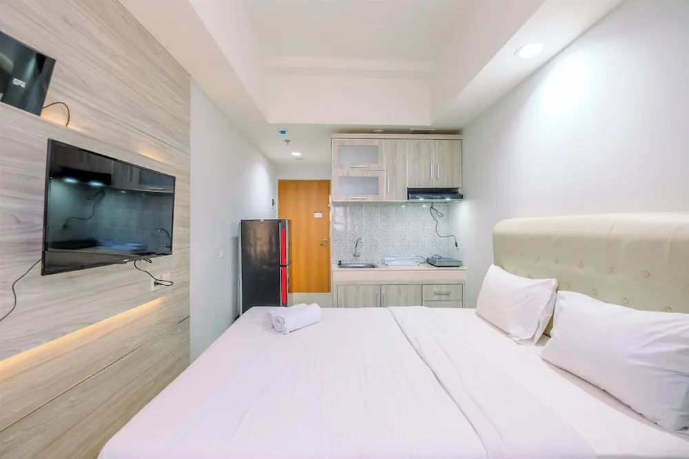 Отель Modern Look And Comfortable Studio Evenciio Margonda Apartment, адрес на карте Депок, Tower 1 FL10 #05 Jl Margonda Raya No.508, с характеристиками номеров и доступностью онлайн бронирования на сайте ВашОтель.RU , цены проживания и удобства.