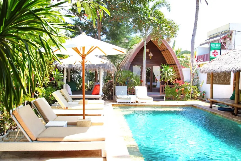 Отель Unzipp Lumbung 3 звезды, адрес на карте Гили Траванган, Jalan Vila Kelapa, с характеристиками номеров и возможностью онлайн бронирования на ресурсе vashotel.ru , цены проживания и удобства.