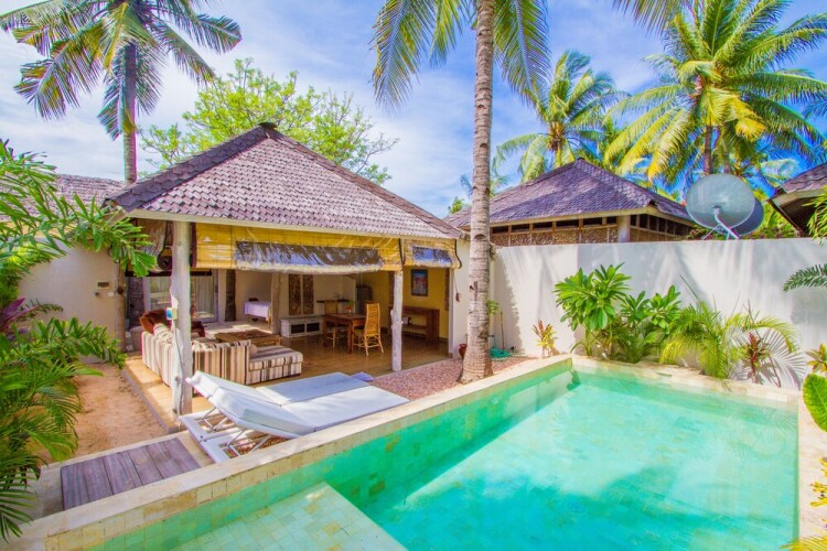 Отель Villa Spalia 3 звезды, адрес на карте Гили Траванган, Jalan Ikan Tumbak, с описанием номеров и доступностью онлайн бронирования на ресурсе vashotel.ru , стоимость проживания и удобства.