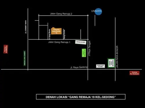 Отель Gang Remaja 19 1 звезда, адрес на карте Джакарта, Gang Remaja No. 19 Kel. Gedong Rt 5/3 No.19, с описанием номеров и правом онлайн бронирования на сайте ВашОтель.RU , стоимость проживания и удобства.